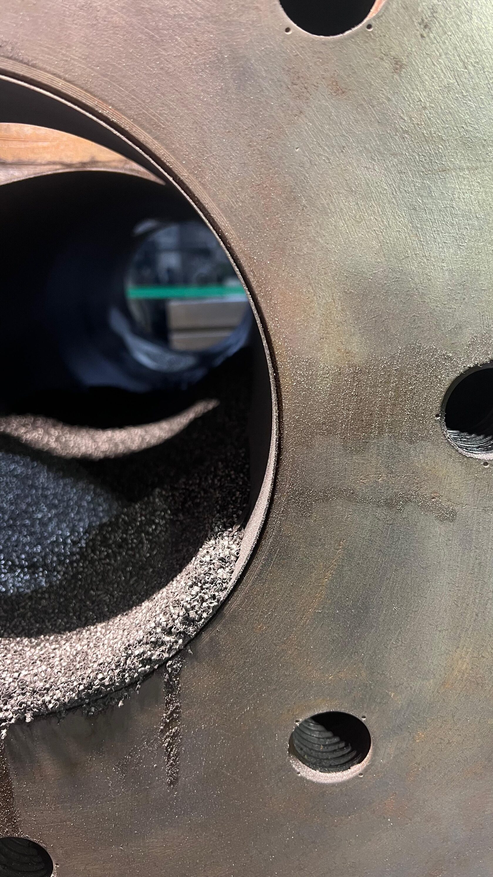Закончили демонтаж чугунных гильз из корпусов цилиндров. Расточные работы производились на горизонтально-расточном станке (ГРС). Задача стояла деликатная - демонтировать запрессованные гильзы из корпуса цилиндра таким образом, чтобы не повредить посадочную поверхность самих цилиндров. В нашем распоряжении было два корпуса цилиндра и мы справились с задачей на отлично!