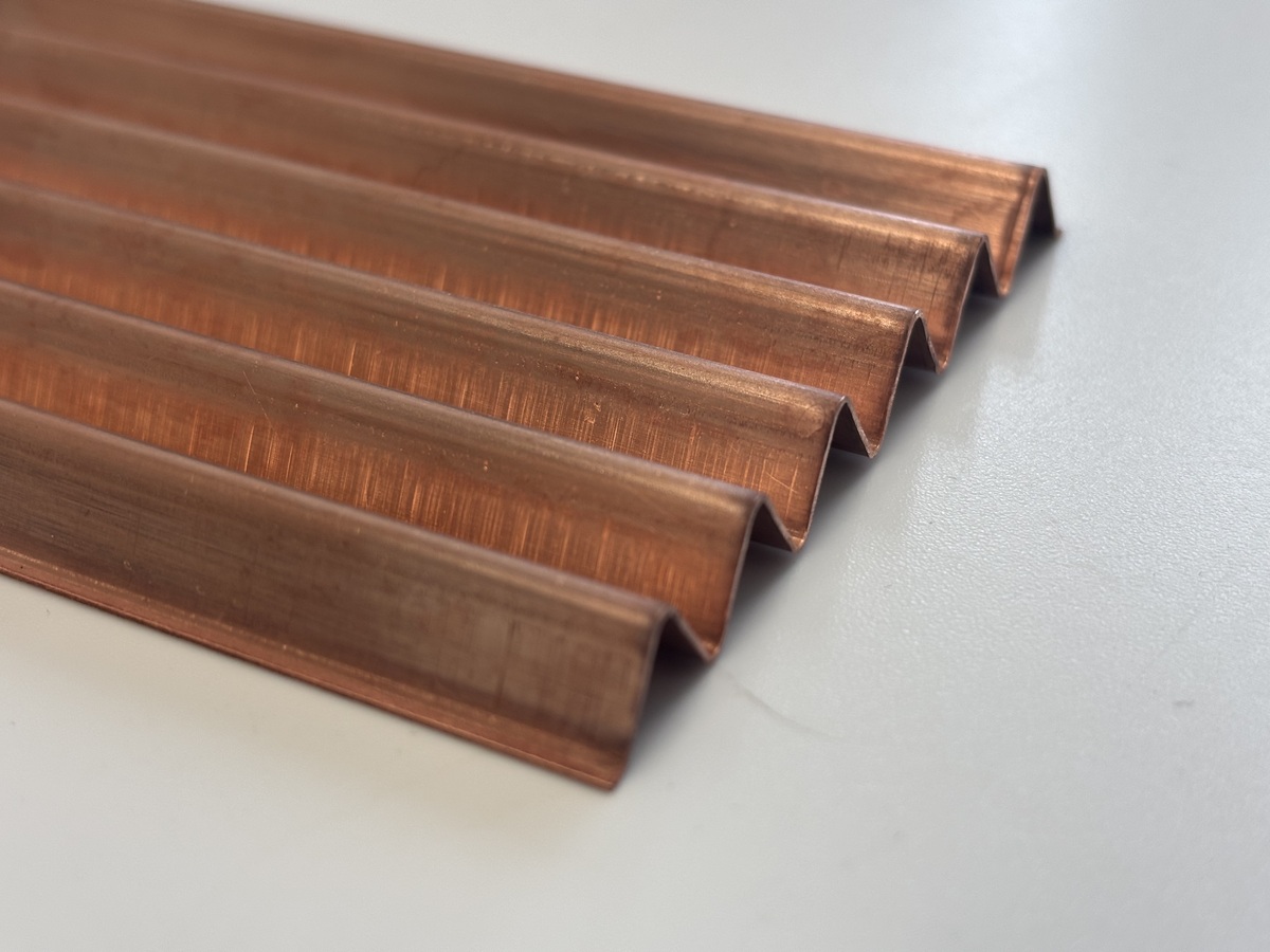 Основная сложность заключалась в подборе корректной технологии гибки: тонкая медь склонна к деформациям, заломам и потере геометрии. Для достижения требуемого результата специалисты методом расчётов и практических испытаний разработали и изготовили индивидуальную матрицу, а также определили оптимальные режимы гибки и параметры заготовки.