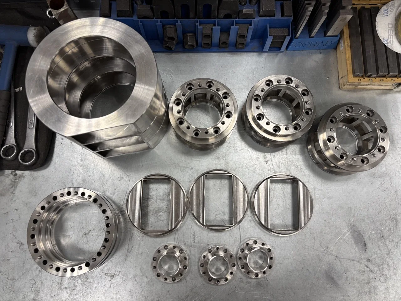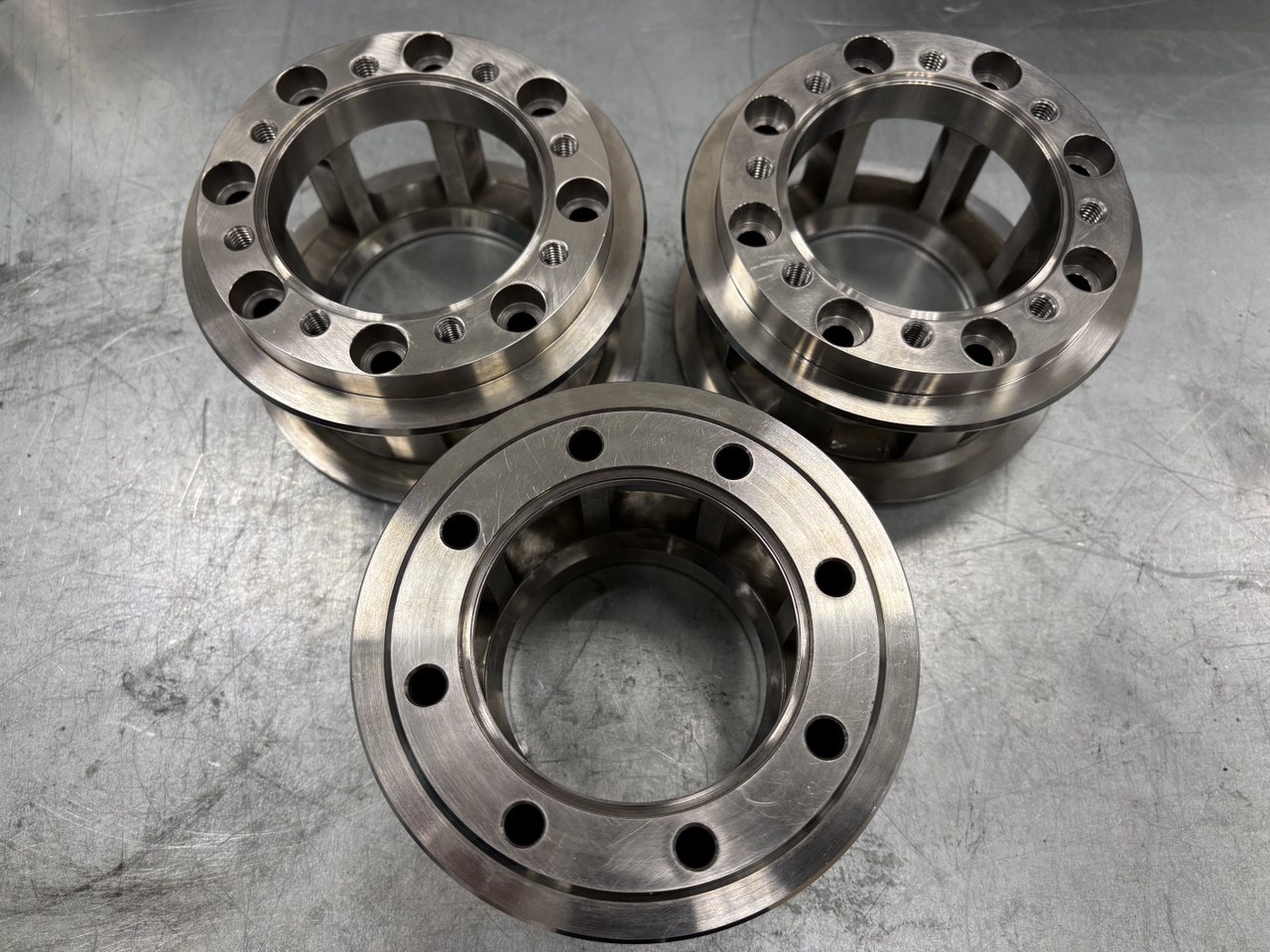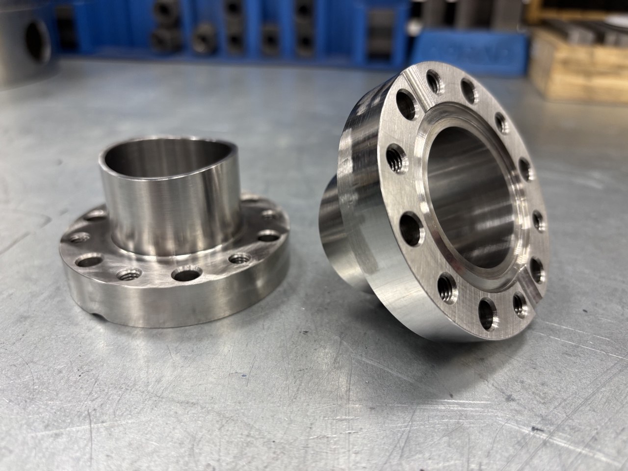 Изделия изготовлены из коррозионностойкой стали марки 12Х18Н10Т. Этот сплав отличается высокой устойчивостью к агрессивным средам и отлично подходит для эксплуатации в условиях перепадов температур. Основные технологические операции — токарная и фрезерная обработка, дополнительно выполнялась сварка.