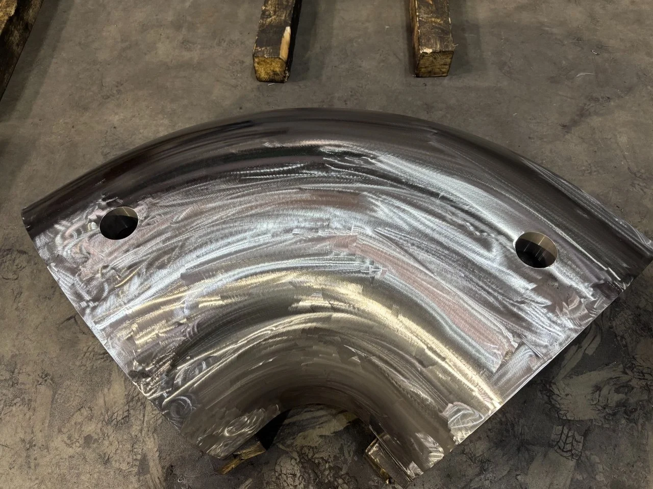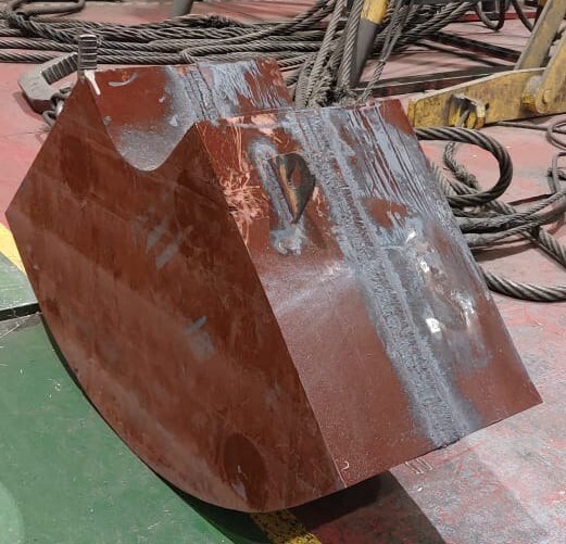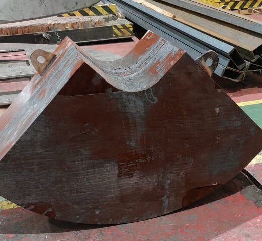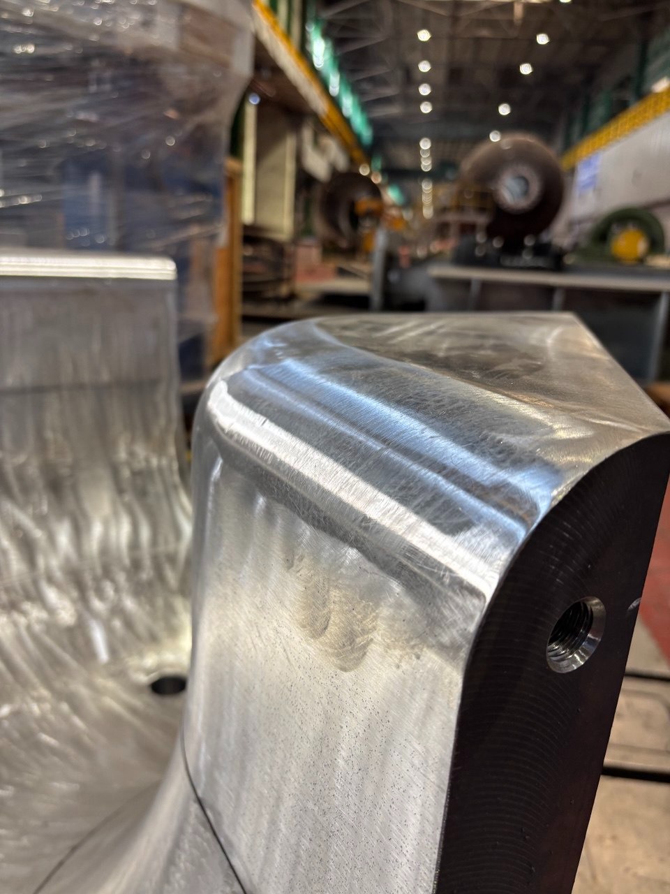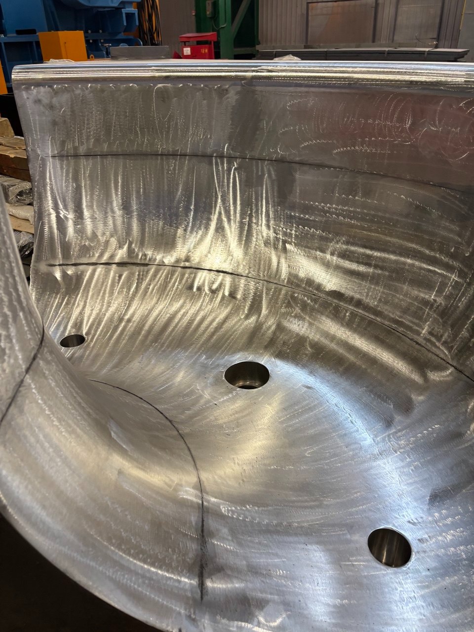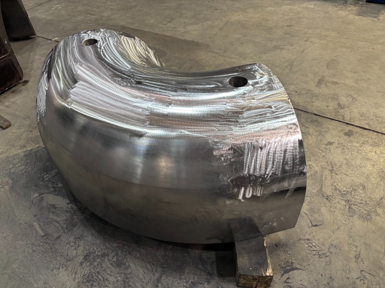 Масса заготовки для пуансона — около 4,8 тонны, для матрицы cha— примерно 6,7 тонн. Оба изделия были изготовлены из давальческого материала — сваренных листов металла толщиной 280 мм. Как выглядели заготовки до и после сварки, можно увидеть на фото ниже: