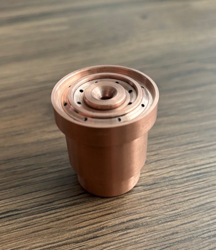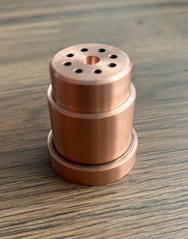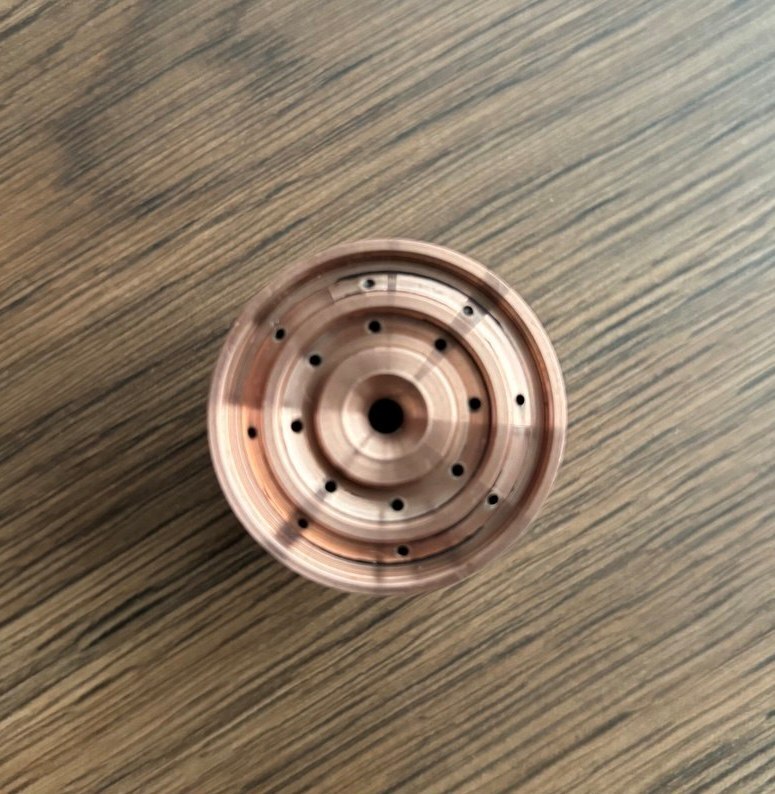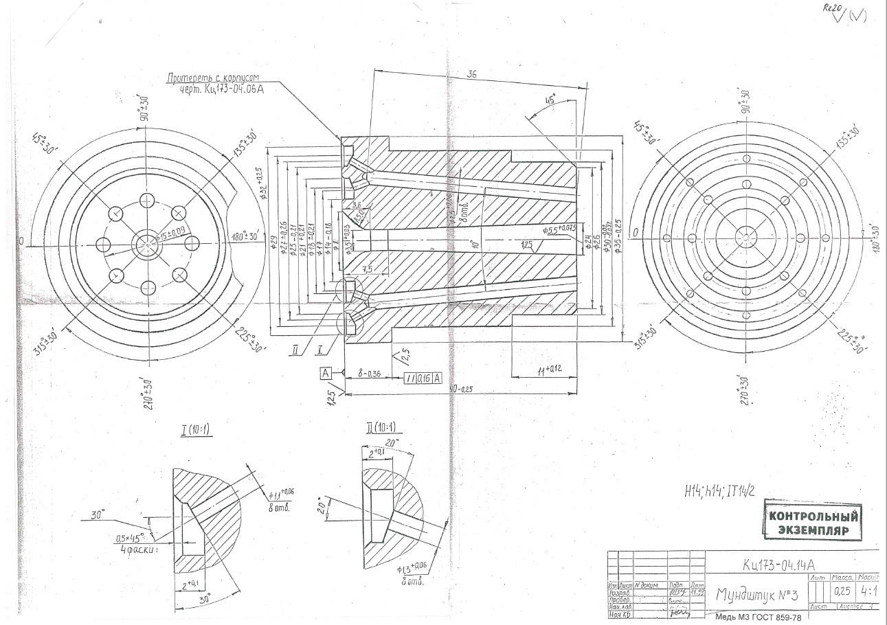 Заказчик обратился к нам с просьбой изготовить изделия из меди. Никто на рынке не хотел браться за данные изделия. Причин этому было несколько - старые чертежи, мелкая партия (всего 5 шт.), высокие точности, геометрия центрального отверстия и очень мелкие диаметры отверстий в сочетании с материалом, а главное - как и чем контролировать полученную геометрию.