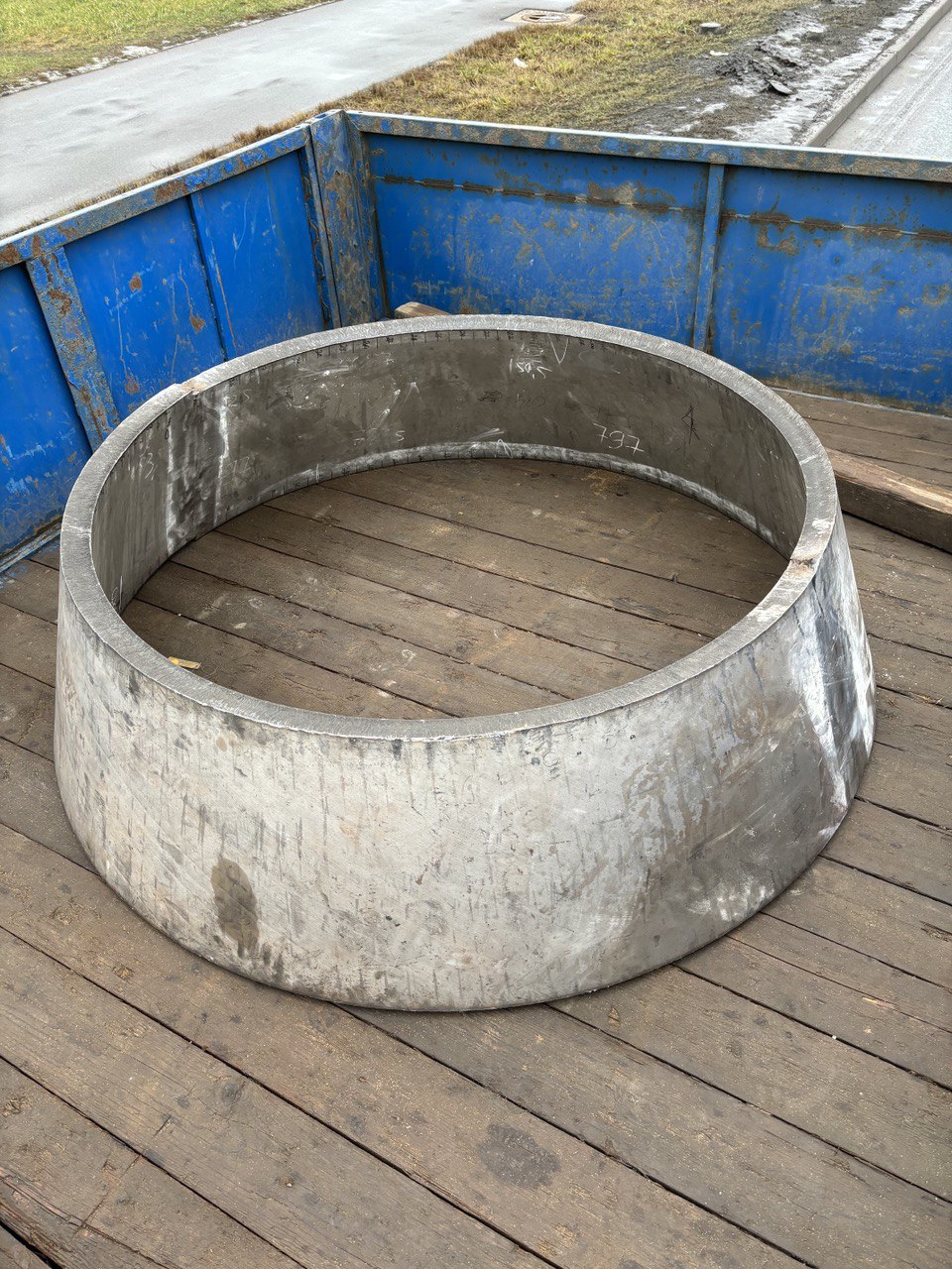 Отгрузили партию конусных обечаек. Материал - нержавеющая сталь 08Х18Н10Т. Толщина обечаек 50 мм. Материал предоставлял Заказчик. Обечайки гнули из двух и трех частей. Нужную форму получали методом сегментной гибки на прессе. Сварку/сборку из частей производил сам Заказчик. Для того чтобы в процессе сварки все удачно собралось, были сделаны 3-х мерные шаблоны, повторяющие внутреннюю поверхность будущих обечаек. После сварочных работ изделия прошли калибровку, что позволило получить их почти идеальную геометрию.