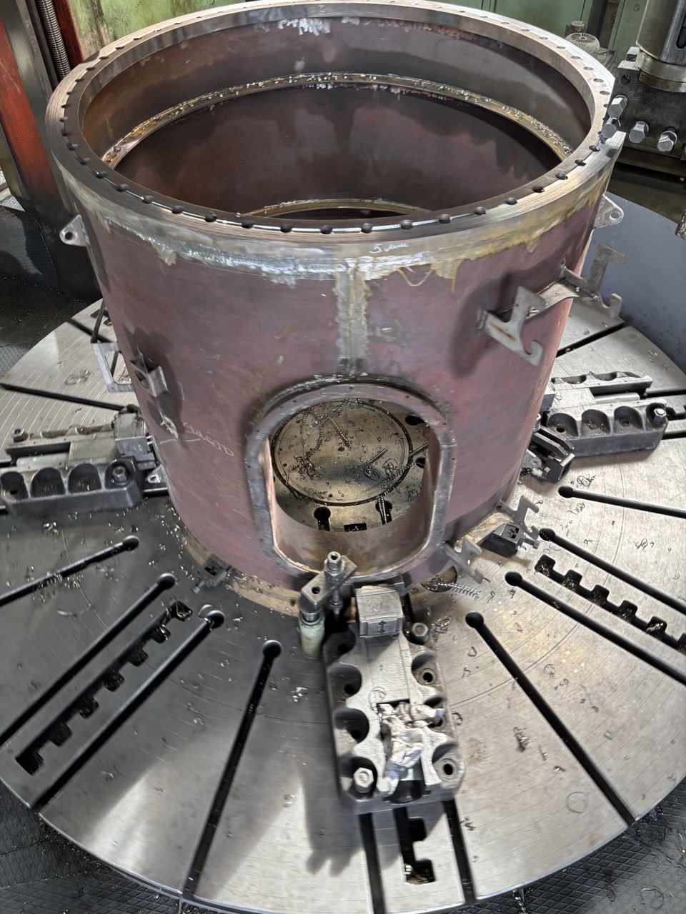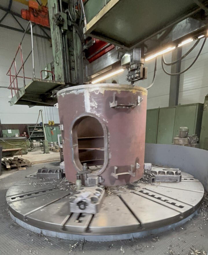 На данных изделиях мы обрабатывали верхние фланцы - торцевали их и устаивали канавки под сварку. В данной работе самое сложное это правильно выставить деталь-заготовку на станке. Т.к. припуск на механическую обработку Заказчик оставил совсем небольшой, а именно 2 - 3 мм на толщину фланца, риск "запороть" деталь был велик. Но мы успешно справились с постеленной перед нами задачей. Спасибо нашему Исполнителю за профессионализм.